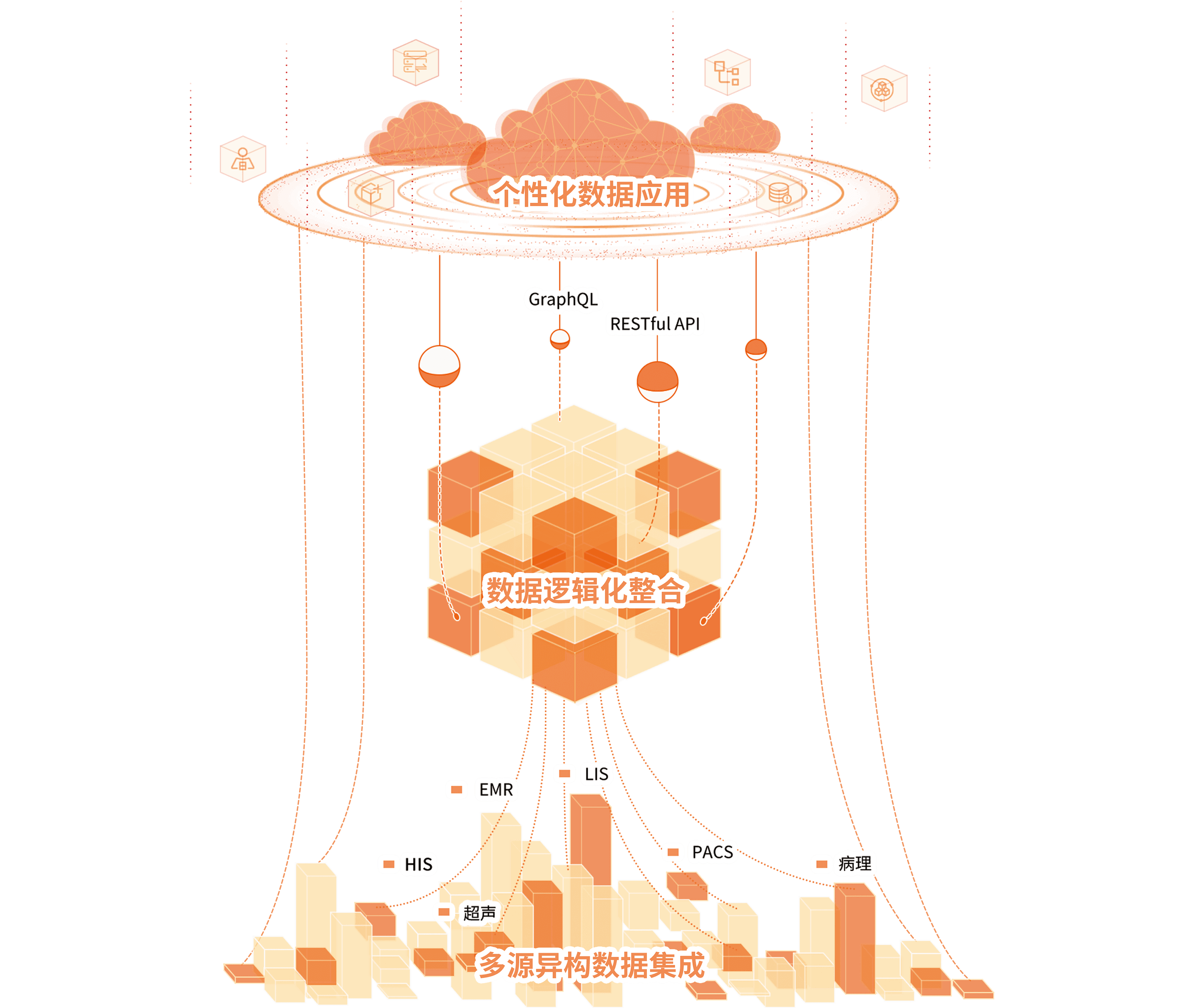 醫(yī)眾醫(yī)療數(shù)據(jù)服務采用 Data Fabric 數(shù)據(jù)編織的架構(gòu)理念,幫助用戶應對在數(shù)據(jù)資產(chǎn)化進程中產(chǎn)生的復雜性、分布式、多元化等因素,從單純的以數(shù)據(jù)應用為核心建設數(shù)字化,向體系化的數(shù)據(jù)服務能力建設轉(zhuǎn)型。